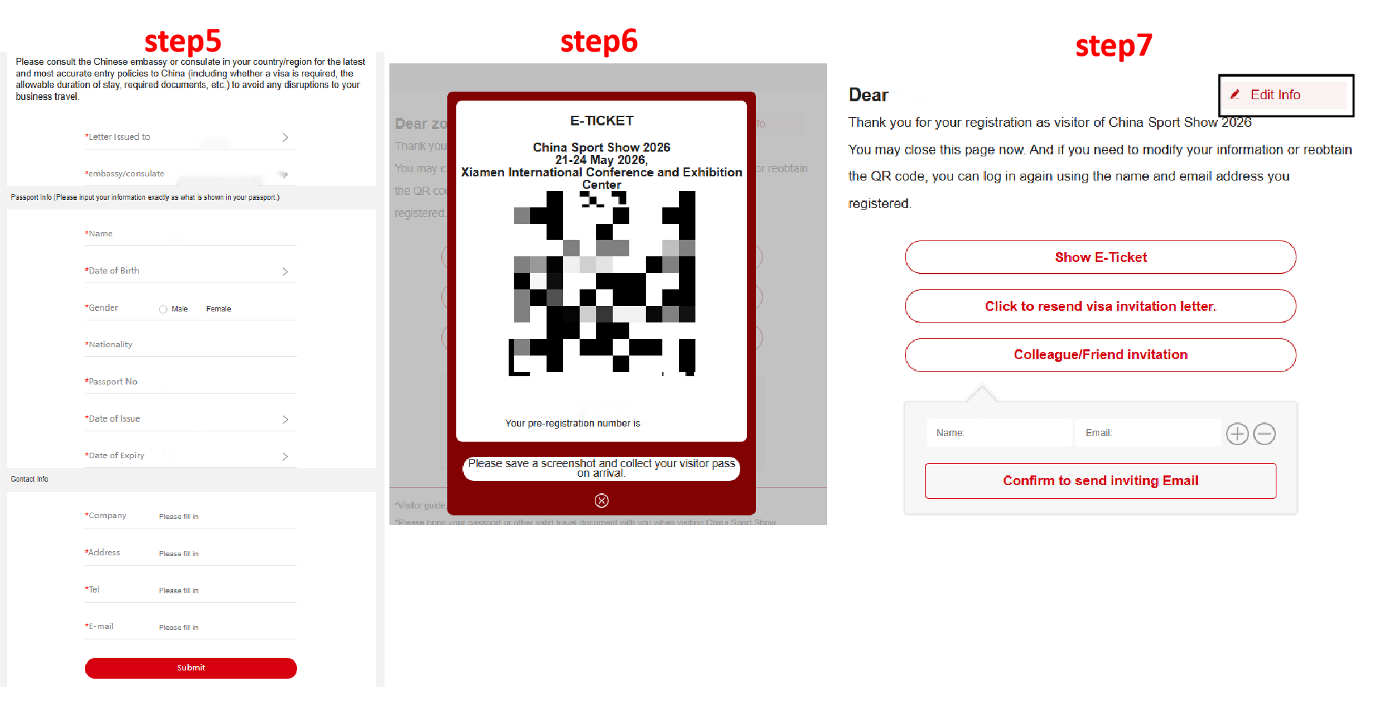 7.After submission, a confirmation email for successful pre-registration and an electronic version of the visa invitation letter will be sent to your email. Please ensure accurate personal information is provided.